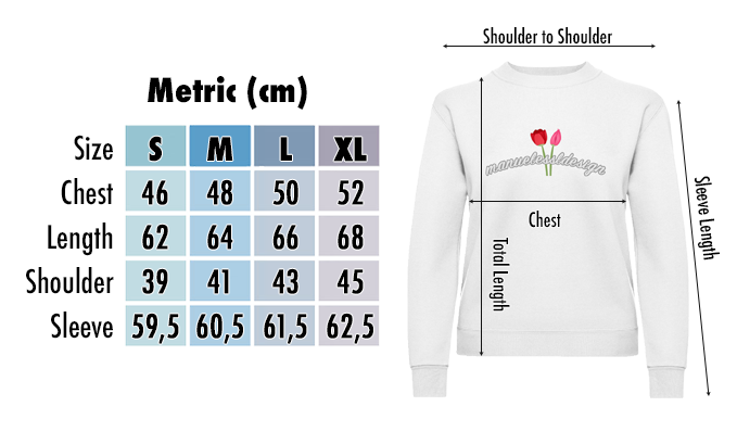 Sehe Dir die Größentabelle an, um Deine perfekte Größe zu finden. Wenn Deine Maße zwischen zwei Größen liegen, empfehlen wir Dir, die größere Größe zu wählen. Auch wenn Du möchtest, dass das Kleidungsstück lockerer sitzt.
